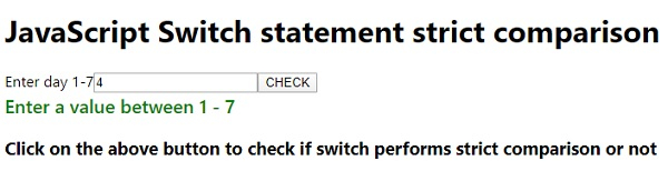輸入數字並單擊“檢查”時,由於 switch 總會執行嚴格比較,因此每次都會呼叫 default 語句 −