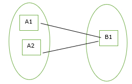 實體集 A 最多與 B 中的一個實體相關聯,並且 B 中的實體集可以與 A 中的任意數量的實體相關聯,可能為零。