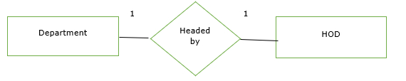 下面是對映基數中一對一關係的示例。這裡,一個部門有一個部門負責人(HOD)。