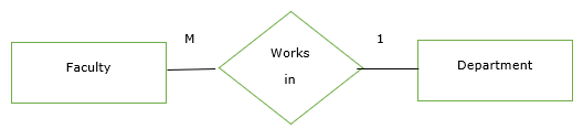 下面是對映基數中多對一關係的示例。這裡,許多教師在一個部門工作。