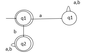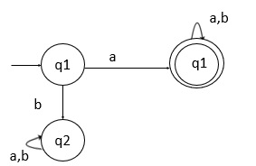 下面給出了接受所有以 'a' 開頭的 {a, b} 上的字串集的 L1 的 DFA 的狀態轉換圖: