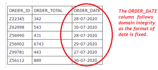 它確保 DB2 表中的列資料符合允許的值集。例如,在 ORDERS 表中,ORDER_DATE 列上的域完整性確保此列中的資料始終為 DATE 格式。