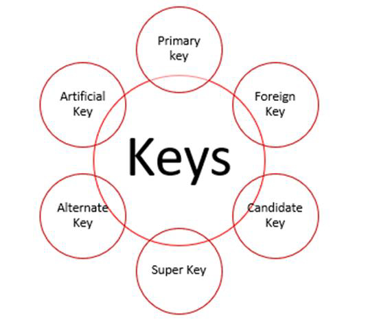 資料庫管理系統 (DBMS) 中的不同型別的鍵如下所示: