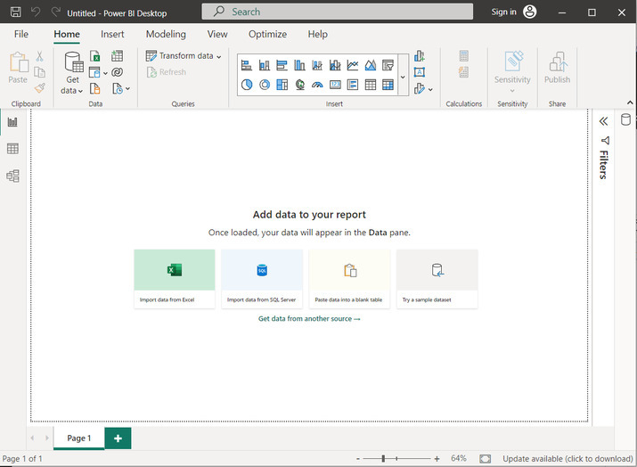 開啟 Power BI 軟體後,使用者將看到的第一個視窗如下所示: