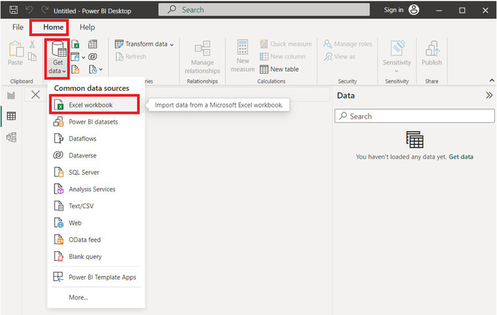 首先,轉到“獲取資料”選項,然後選擇“Excel 工作簿”選項。下面提供了相應的快照: