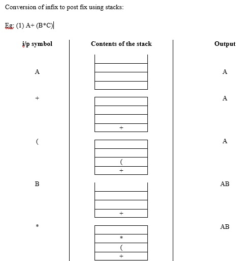 Infix to prefix Infix to postfix A +B*C / D-E+F A +B*C / D-E+F A +*BC / D-E+F A +BC* / D-E+F A + / *BCD -E+F A +BC*D /-E+F +A /*BCD -E +F ABC *D /+ -E+F -+A/*BCDE +F ABC *D/ +E- +F + - +A/*BCDEF ABC *D / +E –F+