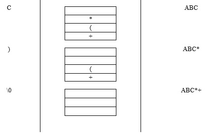 使用棧將中綴表示式轉換為字尾表示式的過程如下所示: