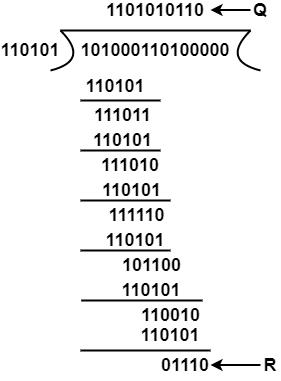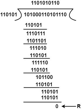 新的資料單元使用稱為二進位制除法的過程除以除數;除法產生的餘數就是 CRC。