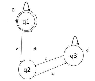 - 步驟 2 - 從第一個機器 M 在狀態 q1 接收輸入 c 時,我們僅到達狀態 q1,它是最終狀態。