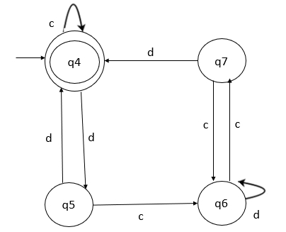 - 步驟 3 - 從第二個機器 M1 在狀態 q4 接收輸入 c 時,我們到達狀態 q4,它是最終狀態。