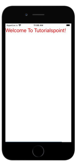View 元件上使用了 style flex: 1。文字元件包裝在 View 元件內,並顯示文字“歡迎來到 Tutorialspoint!”。如果檢視輸出,預設情況下文字會在狀態列上渲染。