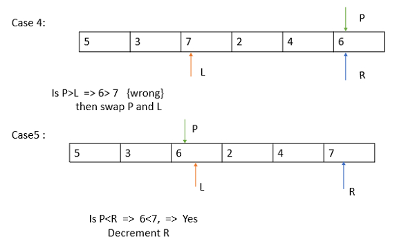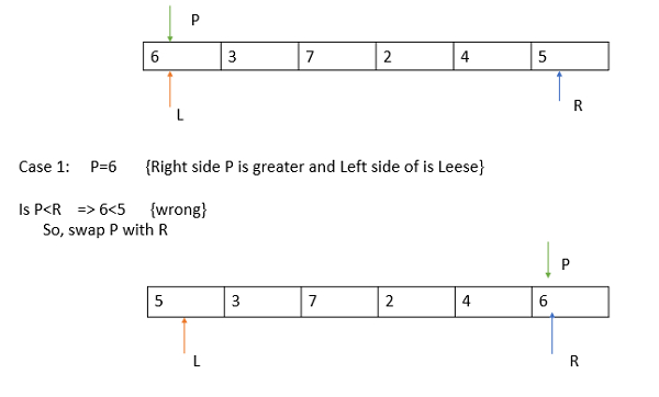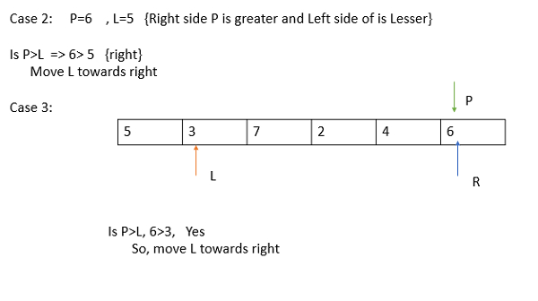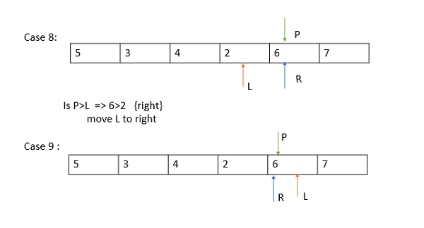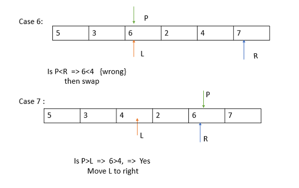 - 步驟3 - 如果值小於樞軸元素的值,則進入第一個子陣列;其餘大於樞軸元素的值進入第二個子陣列。