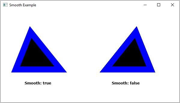 smooth 屬性指定是否使用抗鋸齒提示。可以使用 javafx.scene.shape.Shape 類的 setSmooth() 方法將值設為該屬性。