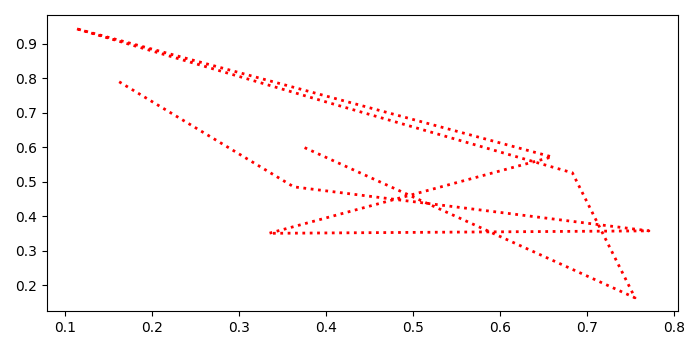 ax.plot(x, y, ls='dotted', linewidth=2, color='red')