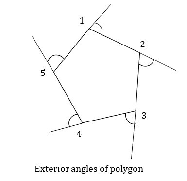 假設你從頂點$\mathrm{\angle 1}$開始,沿順時針方向移動,你經過$\mathrm{\angle 2, \angle 3, \angle 4\: \&\: \angle 5}$回到同一個頂點。一個完整的旋轉等於3600。因此,任何多邊形的外角之和為3600。