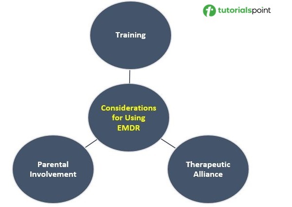 對兒童使用 EMDR 時,應記住一些關鍵考慮因素。首先,治療師必須接受專門針對兒童工作的培訓。其次,父母或監護人的參與至關重要,通常包括治療前和治療後的會議。此外,最後,建立牢固的治療聯盟——兒童和治療師建立安全聯絡——對於成功的 EMDR 治療至關重要。