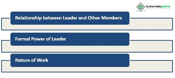 指揮官管理群體情況的能力被稱為情境有利度或情境控制。更具體地說,是指群體指揮官在面對當前情況時能夠影響成員行為的程度。領導/成員關係:指揮官與下屬之間相互尊重、信任和信心的程度,在菲德勒權變領導模型中被稱為指揮官-成員關係因素。當指揮官和成員相處融洽時,指揮官對局勢有很大的影響力,這使得指揮官更有優勢。不良的指揮官-成員關係迫使群體的指揮官將注意力從活動轉移到控制行為和解決衝突上。任務組織:任務結構因素衡量的是群體任務的定義程度和結構化程度。當任務結構較低(非結構化)並且沒有明顯的解決方案或實現目標的最佳方法時,群體任務是不明確的。權力指揮官職位:指揮官對群體的控制力,或指揮官獎勵或懲罰群體成員的程度,由指揮官職位權力因素衡量。指揮官能夠控制局勢的程度隨著權力的增加而增加。