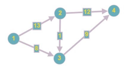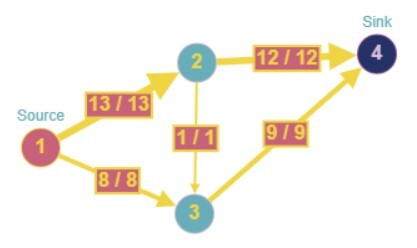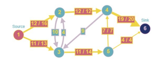 換句話說,我們有一個 N 個節點的有向圖。我們給定一個源節點和一個匯點。圖中還有 M 條邊,每條邊都有一個權重,表示它能夠處理的最大容量。我們需要找出可以在不超過任何邊的容量的情況下從源節點傳輸到匯點的最大流量。
