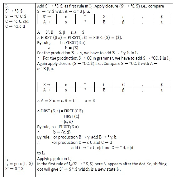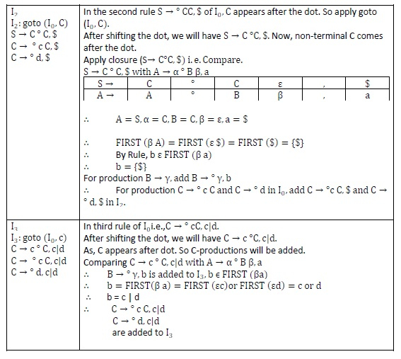 步驟2 − 查詢閉包和 goto 以構造 LR(1) 專案