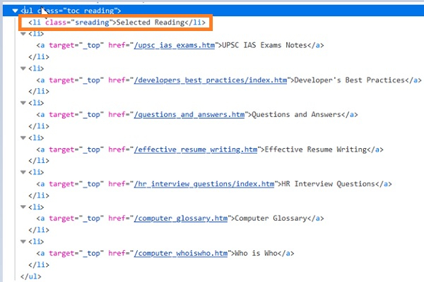 List<WebElement> n = driver.findElements(By.xpath("//ul[@class=' toc reading']/li")); WebElement m =driver.findElement(By.xpath("//ul[@class=' toc reading']/li[1]"));