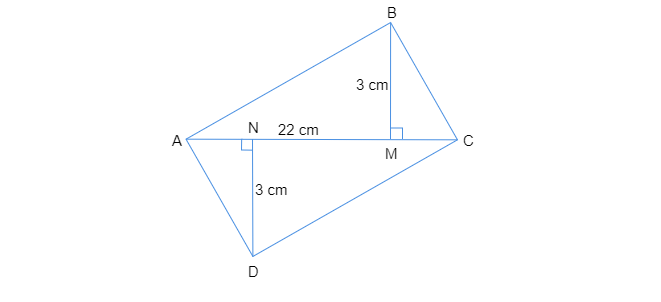 求四邊形ABCD的面積。已知AC = 22釐米,BM = 3釐米,