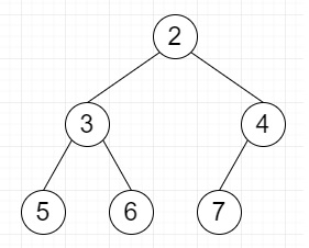 root = TreeNode(2) root.left = TreeNode(3) root.right = TreeNode(4) root.left.left = TreeNode(5) root.left.right = TreeNode(6) root.right.left = TreeNode(7)