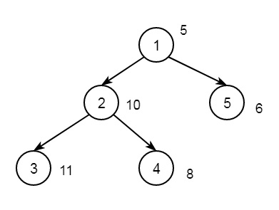 假設我們有一棵樹,以及所有節點的權重和一個整數 x。我們必須找到節點 i,使得 |weight[i] - x| 最小。如果該圖如下,且 x = 15