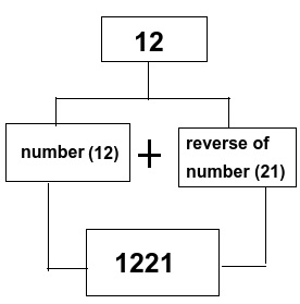 解釋 - 12 不是迴文數,因此要將其轉換為迴文,將 12 與 21(12 的反轉)連線起來。我們可以透過給定的圖表來理解