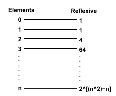 Explanation : set = { 1,2 }, reflexive relations on A * A :