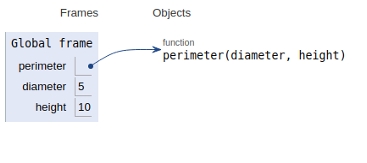 ('Perimeter =', 30)所有變數和函式均在全域性框架中宣告,如下圖所示。