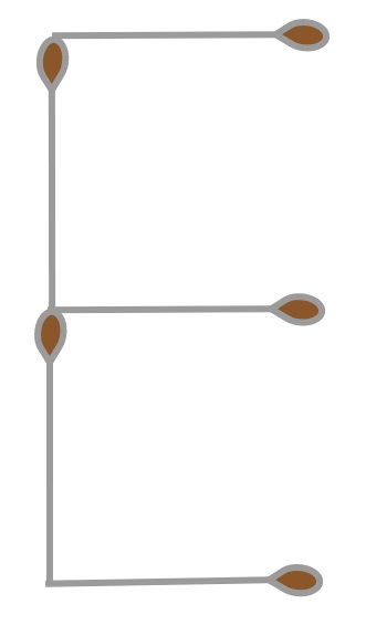從圖中,我們觀察到製作字母 E 需要五根火柴棒。