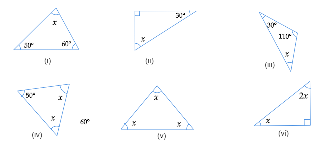 已知:上圖中給出的帶有未知角 $x$ 的三角形。