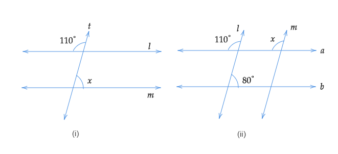 我們必須在給定圖形中找到 x 的值,前提是 l || m。