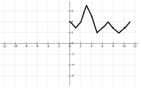 如果我們將此陣列的點繪製在 y 軸上,每個相鄰點在 x 軸上相距單位距離,則圖形如下所示: