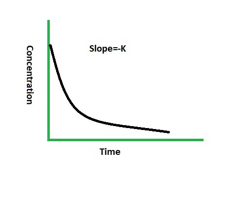 反應速率僅取決於其中一種反應物的反應稱為一級反應。對於此類反應,如果反應物濃度加倍,則反應速率也會加倍。順鉑(用於治療癌症的藥物)的水解是一級反應的一個例子。此類反應的曲線圖是: