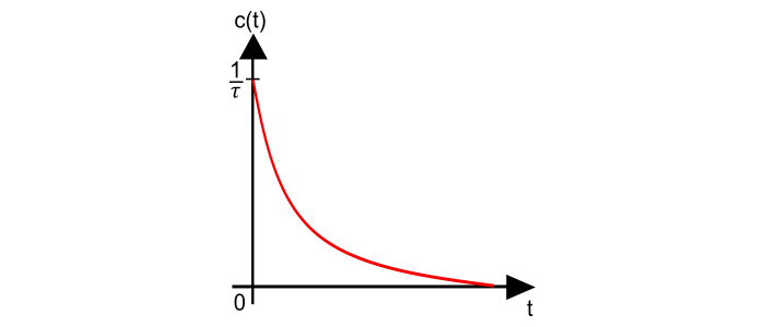 $$C(t)=\frac{1}{\tau}e^{(-t/\tau)}u(t)\:\:\:\:for\:t\geq0\:\:\:\:...(14)$$