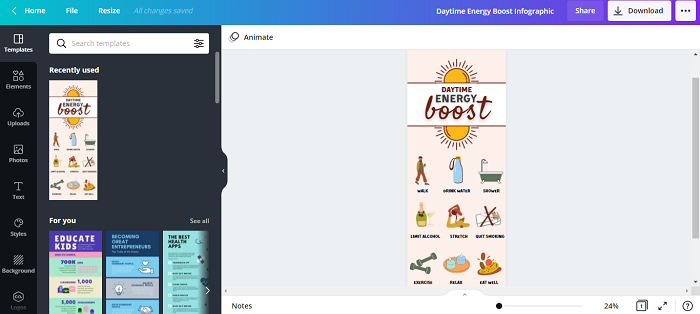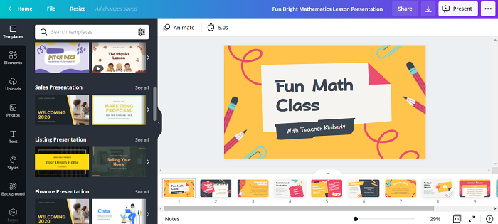 無論你是試圖讓學生學習變得有趣的老師,還是試圖用你的想法給實習生留下良好印象的實習生,簡報都是解決所有這些問題的方案。Canva 有助於使你的簡報看起來正式且簡潔。它還讓你自由地探索不同的功能,並建立滿足所有標準的簡報。