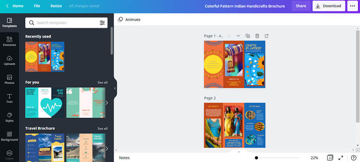宣傳冊以消耗我們預算中的鉅額資金而臭名昭著。Canva 可能無法取代專業的圖形設計師。但對於預算有限的人來說,它恰好是一個經濟實惠且快速的解決方案。豐富的設計可以幫助建立一份分發材料,還可以幫助作者視覺化格式。Canva 憑藉其廣泛的模板,無疑簡化了流程。