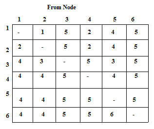 為所有六個節點建立了以下路由表。可以使用最小路徑或最小跳數到達方法建立路由表。