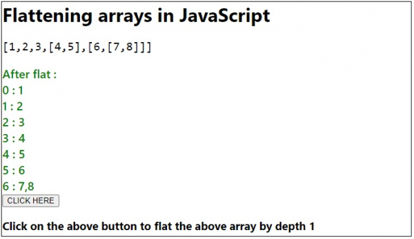 <h3>Click on the above button to flat the above array by depth 1</h3>