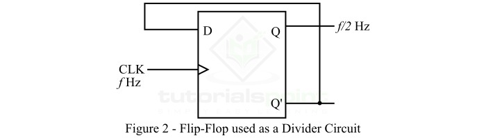 我們可以將觸發器用作分頻電路,只需將其輸出連接回其輸入即可。輸入和輸出之間的這種連線建立了一個反饋路徑,導致觸發器在其兩個穩定狀態之間切換。