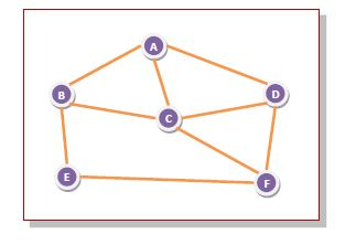例如,讓我們考慮圖中的網路,該網路有六個透過傳輸線路連線的路由器。假設有一個數據包需要從路由器 A 傳送到路由器 F。