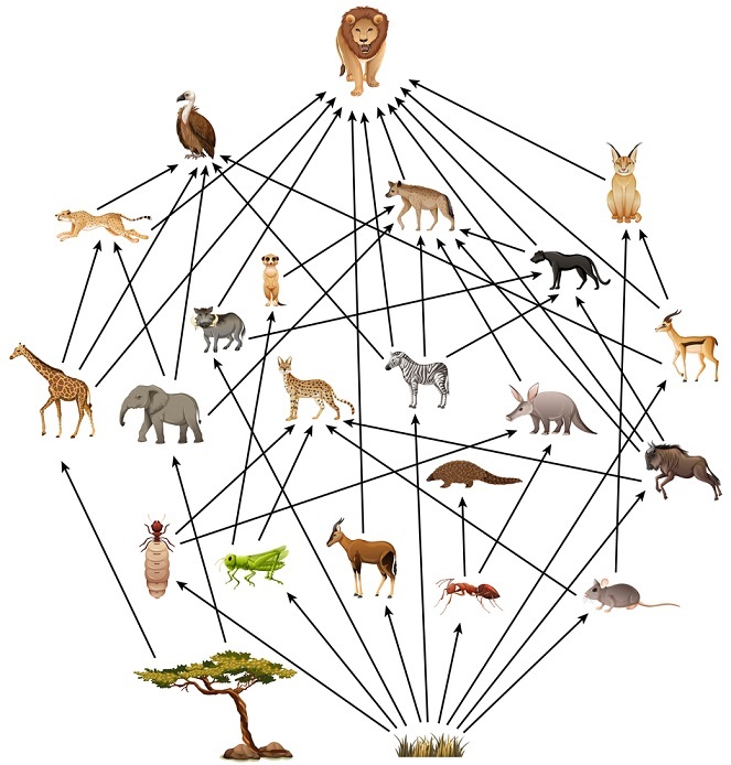 生態系統中相互關聯的食物鏈
