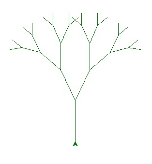 使用 turtle 模組,我們可以遵循類似的方法。此處,turtle 程式開始繪製樹枝作為重複的模式,只需更改繪製的方向即可。我們定義功能重複自身時的角度,然後得到完整的樹。