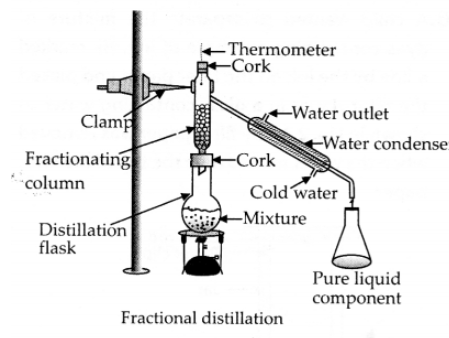 是分餾裝置中最重要的部分。它內部填充了玻璃珠或小顆粒。該柱有助於阻礙兩種液體蒸汽的向上運動。高沸點液體的蒸汽在較低水平先凝結。柱子的長度會提高該過程的效率。