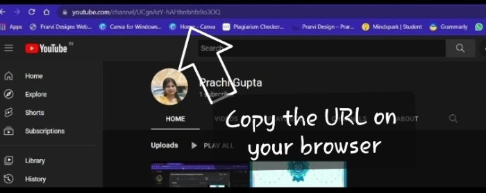 開啟 YouTube 以及您的頻道。從瀏覽器視窗複製 URL 地址。