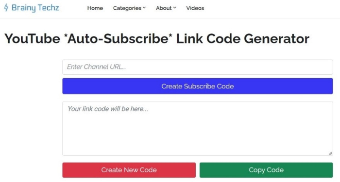 開啟一個免費連結生成器 https://www.brainytechz.com/p/youtube-subscribe-code-generator.html?m=1。