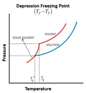 在凝固點降低期間,物質的液相和固相具有相同的蒸氣壓。溶液的凝固溫度低於純溶劑的凝固溫度。為了凝固,必須將溶液降低到低於其純溶劑之一的溫度。