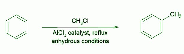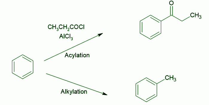用烷基取代芳香質子的過程稱為“傅-克烷基化”。這是透過使用碳正離子對芳香環進行親電攻擊來實現的。傅-克烷基化方法使用烷基鹵化物作為反應物,生成烷基苯。在傅-克醯基化過程中新增醯基時會產生芳基酮。