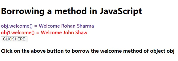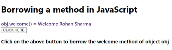 <h3>Click on the above button to borrow the welcome method of object obj</h3>